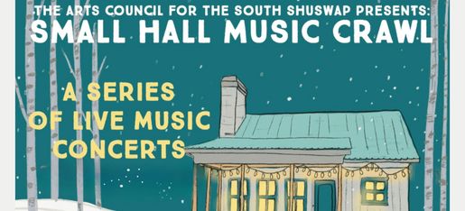 The Small Hall Music Crawl is an annual winter and spring concert series hosted in small community halls across the South Shuswap. These ticketed events feature local and regional musicians in intimate indoor settings, creating a focused listening experience. The series supports live music, local venues, and meaningful community gatherings.